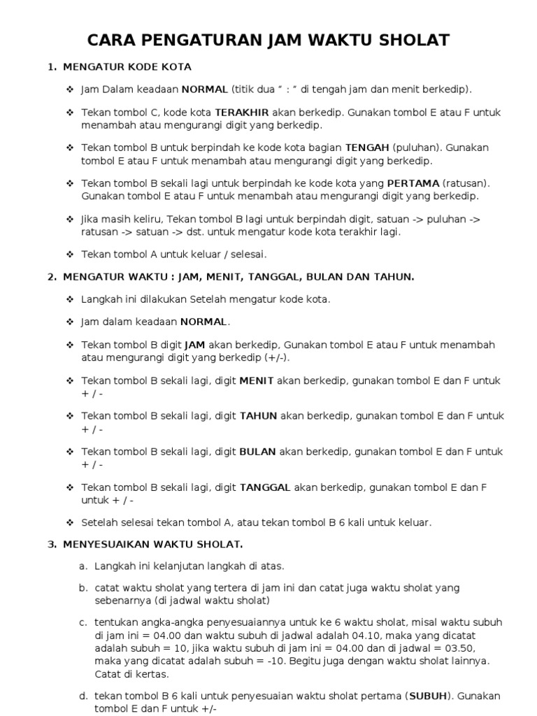 Semoga tahapan cara mensetting jam digital masjid yang diutarakan oleh liniaji | pusat kebutuhan masjid. Untuk pembelian online, setiap produk yang kami. Tutorial setting jadwal sholat digitron dengan remote. Demikianlah tips seputar cara mensetting jam tangan automatic/ kinetik dari kami, semoga bermanfaat buat semua. Pengaturan untuk waktu yang ada pada jam digital masjid bisa diatur dengan cara menekan tombol menu kemudian atur jam sesuai dengan kenyataannya.